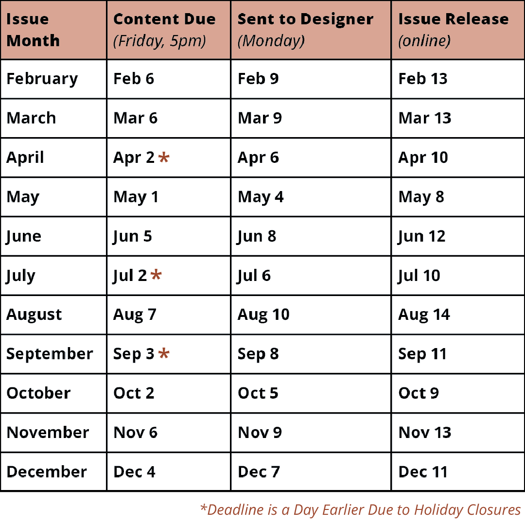 Submissions received after the deadline may be included in a future issue.