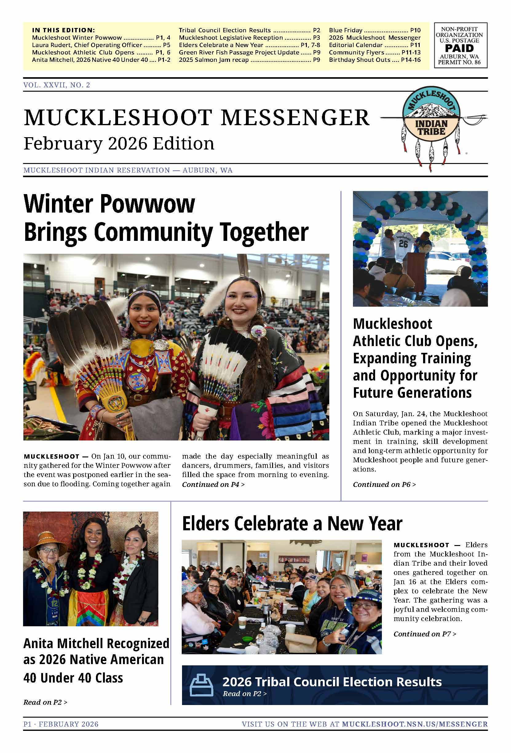 The Muckleshoot Messenger is a monthly Tribal publication. Tribal community members and Tribal employees are welcome to submit items to the newspaper such as announcements, birth news, birthday shoutouts, community highlights, and more. We want to hear from you!